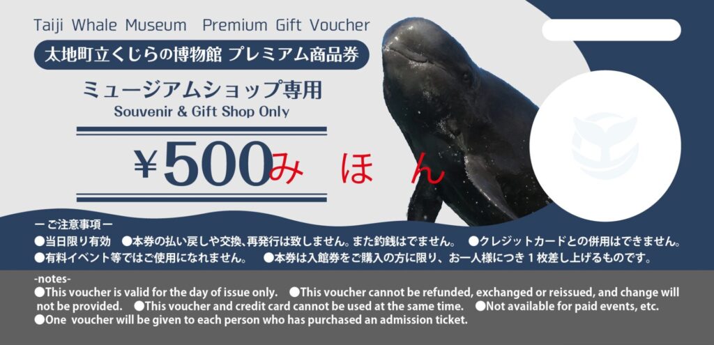 2025年10月1日(水)から、太地町立くじらの博物館ミュージアムショップ専用プレミアム商品券を配布いたします。
